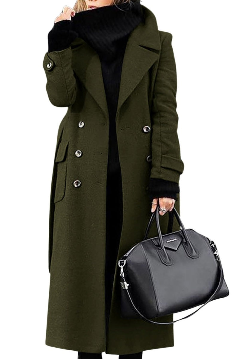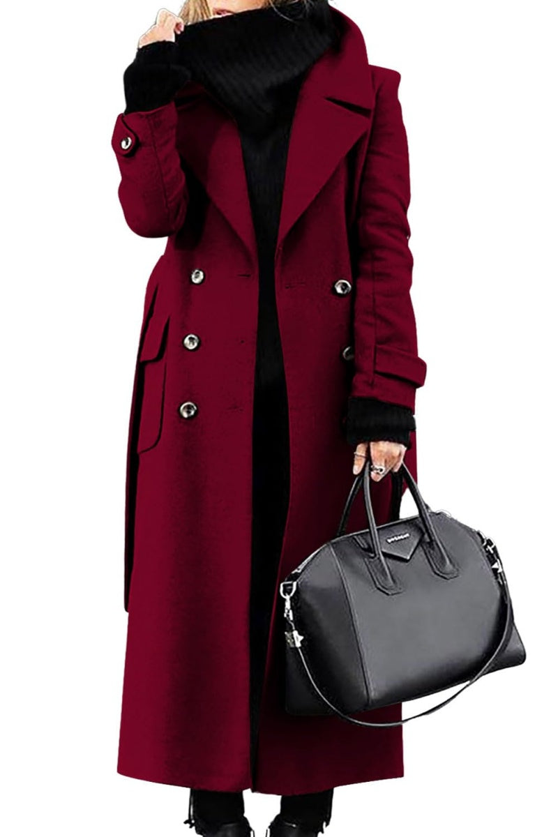 Zeitloses Design: Zweireihige Knopfleiste und klassischer Reverskragen für stilvolle, elegante Eleganz.